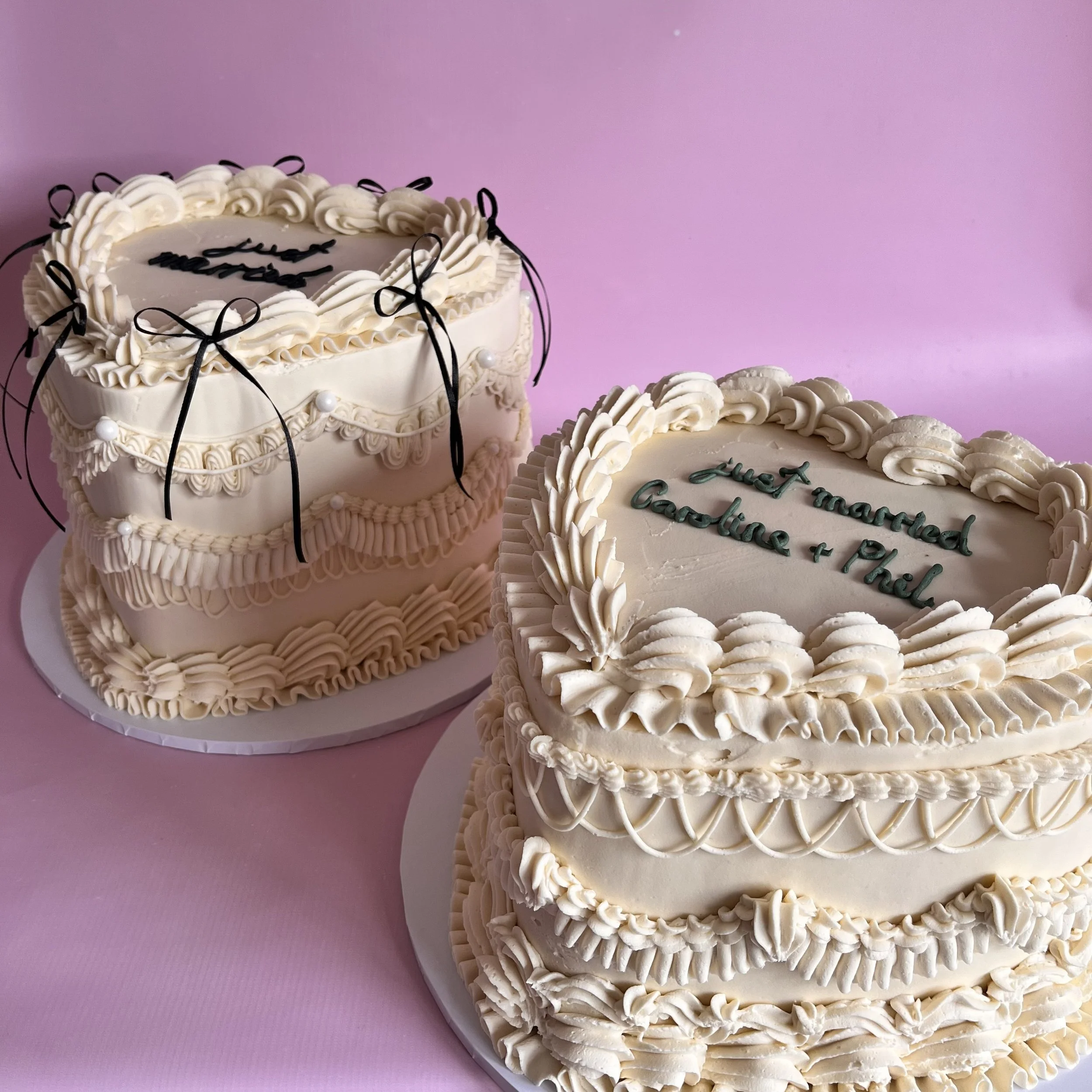 Meet Cute Cakes specialises in alternative vintage wedding cakes, as well as offering modern and minimal designs. We work closely with couples to create wedding cakes that reflect their style, from classic tiers to vintage heart cakes. We offer collection for single tiers only or delivery and setup to ensure your wedding cake is perfect from first look to last bite. Fill out our enquiry form below to get started and cross the cake off your wedmin list.